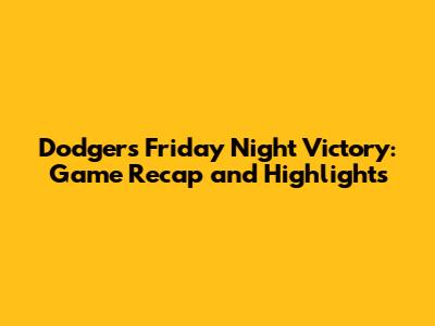 Dodgers Victory: Friday Night's Game Recap