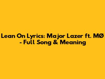 Lean On Lyrics: Major Lazer Ft. MØ - Full Song & Meaning