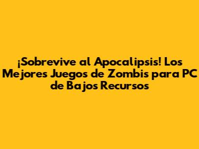 ¡Sobrevive Al Apocalipsis! Los Mejores Juegos De Zombis Para PC De Bajos Recursos